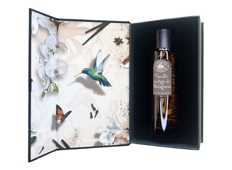 Poco a poco aparece la protagonista absoluta: la vainilla, cremosa y seductora, acompañada por matices de caramelo fundido y un delicado toque anisado que recuerda a los dulces aromas de los mercados de Papeete o a la brisa gourmand que recorre un jardín secreto al caer la tarde.